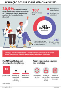 O debate foi solicitado pela deputada Adriana Ventura (Novo-SP), que demonstrou preocupação com os números divulgados pelo Ministério da Educação (MEC). Segundo os dados apresentados pela pasta, mais de 30% dos cursos de medicina avaliados no país receberam notas consideradas insuficientes. Para a parlamentar, o resultado acende um alerta sobre a qualidade do ensino médico. A avaliação também levanta discussões sobre a expansão dos cursos no Brasil.